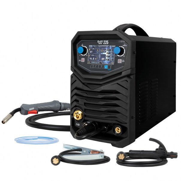 L’écran LCD moderne permet un réglage rapide et intuitif de la tension de soudage et la gestion des fonctions de l’appareil. Lors du réglage des paramètres, l’écran suggère la forme du cordon et indique graphiquement l’épaisseur de matériau recommandée pour le courant sélectionné.